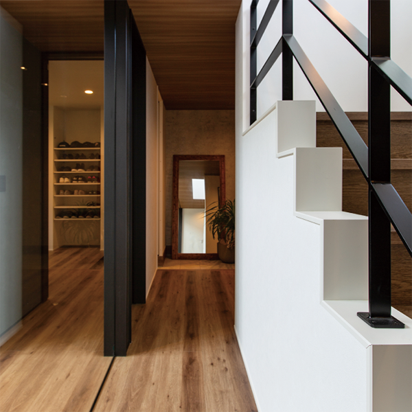 - ディテールにもこだわり、シックな空間に生活動線や家事動線を考えた平面設計だけでなく、開放感にもこだわった三次元設計。