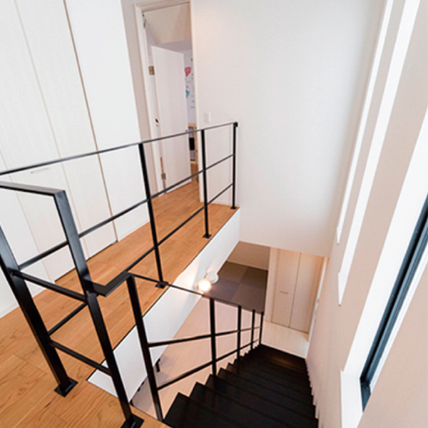スケルトン階段なので2階からの光を遮ることなく取り入れます。
