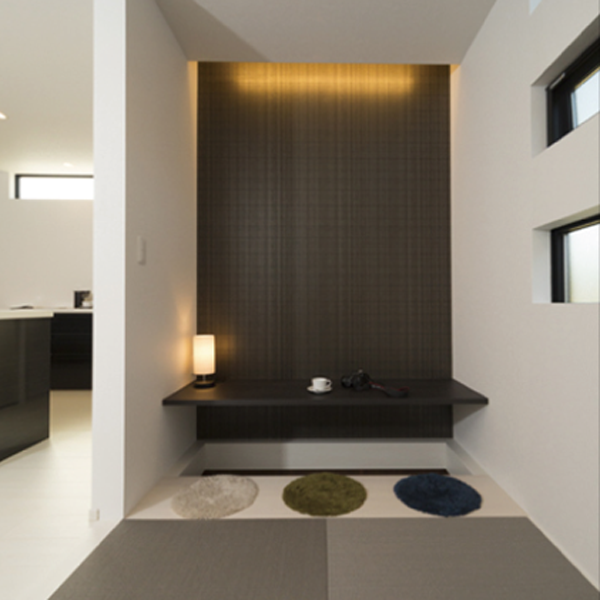 おもてなし空間やL字型など随所にもこだわりが お客様のおもてなしや読書や書き物などにちょうどいい空間の和室をリビングの一角に設置。