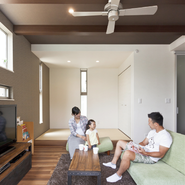隣接する畳スペースはお子様がお昼寝をしたり、モノをすぐにしまえる収納も設置。