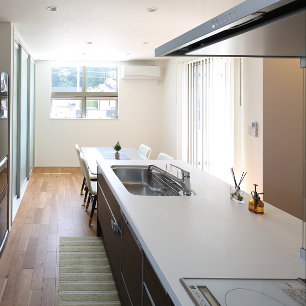 家事のしやすさもデザインされ、キッチン&ダイニングには充実した収納ですっきりとした印象に。