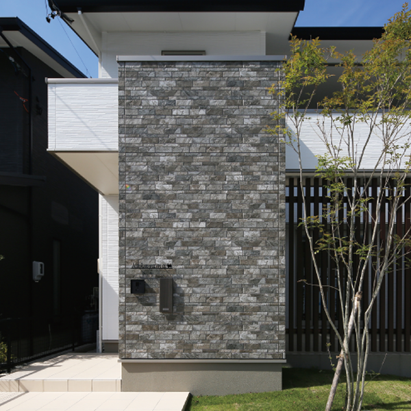 重厚感のあるシックで落ち着いた空間 外観は、白を貴重としながら石目をアクセントにした重厚感あるデザイン。