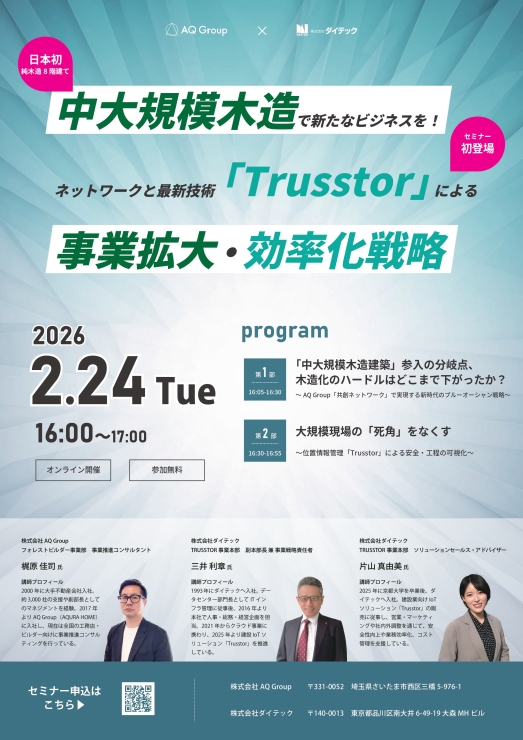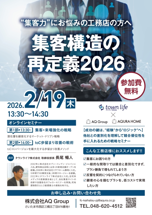 AQ Groupは住宅会社として46年、工務店支援事業に取組み30年以上! 相談会・セミナーお申込みはコチラ