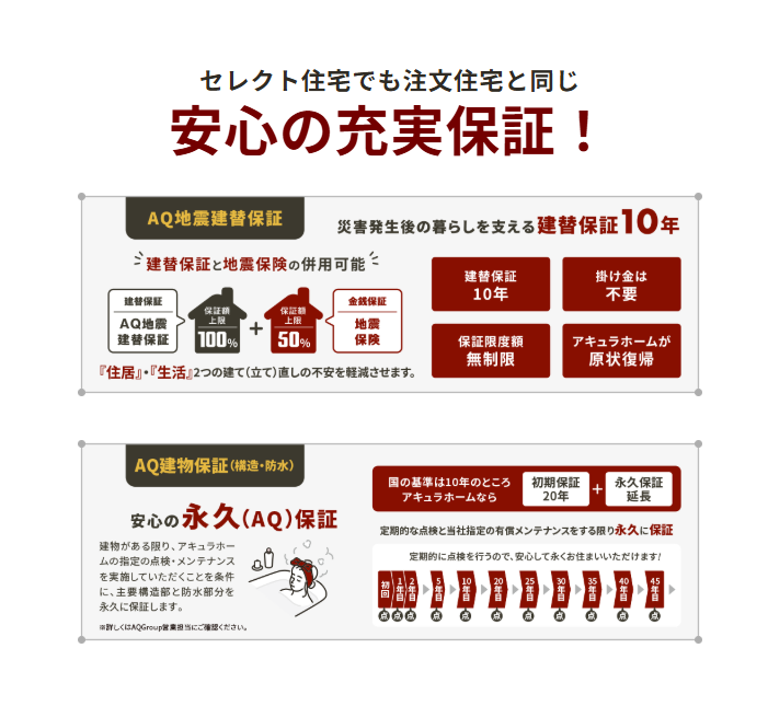 アキュラホームの「高耐震」「高気密・高断熱」「手厚い保証」の住まいを、より手の届きやすい価格でお届けいたします。