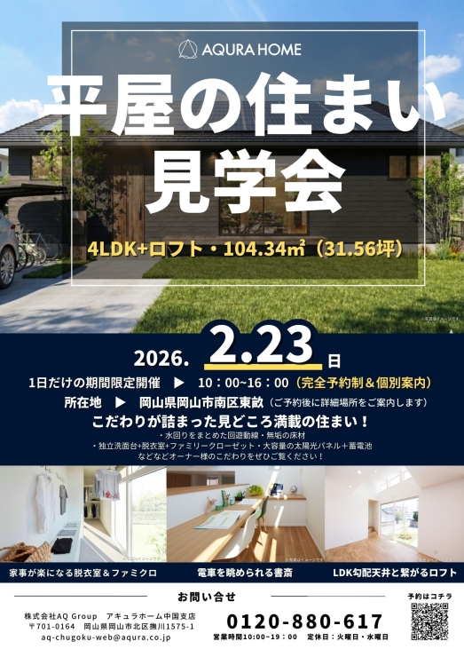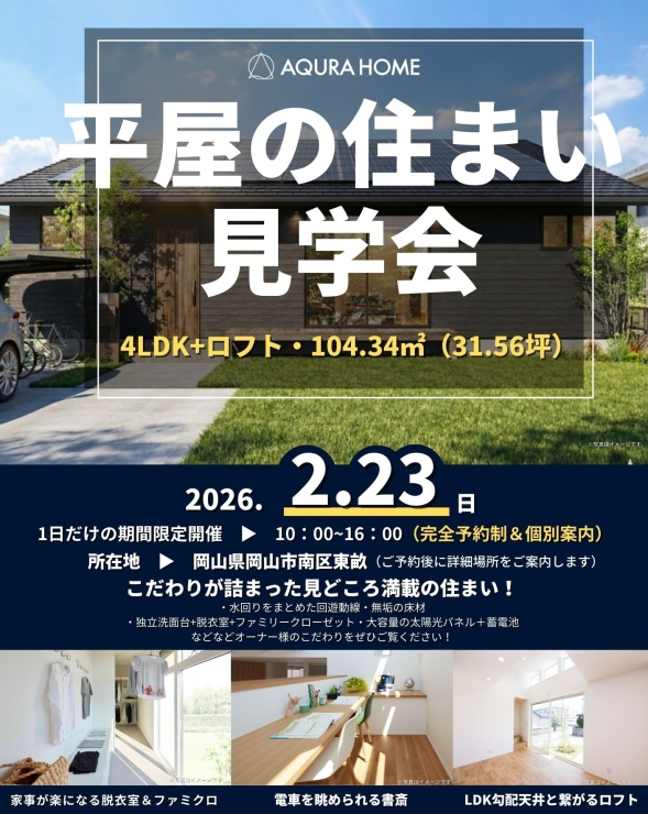 【完成見学会】勾配天井LDK×ロフト×回遊動線のある家|平屋 31.56坪 in岡山市南区東畝