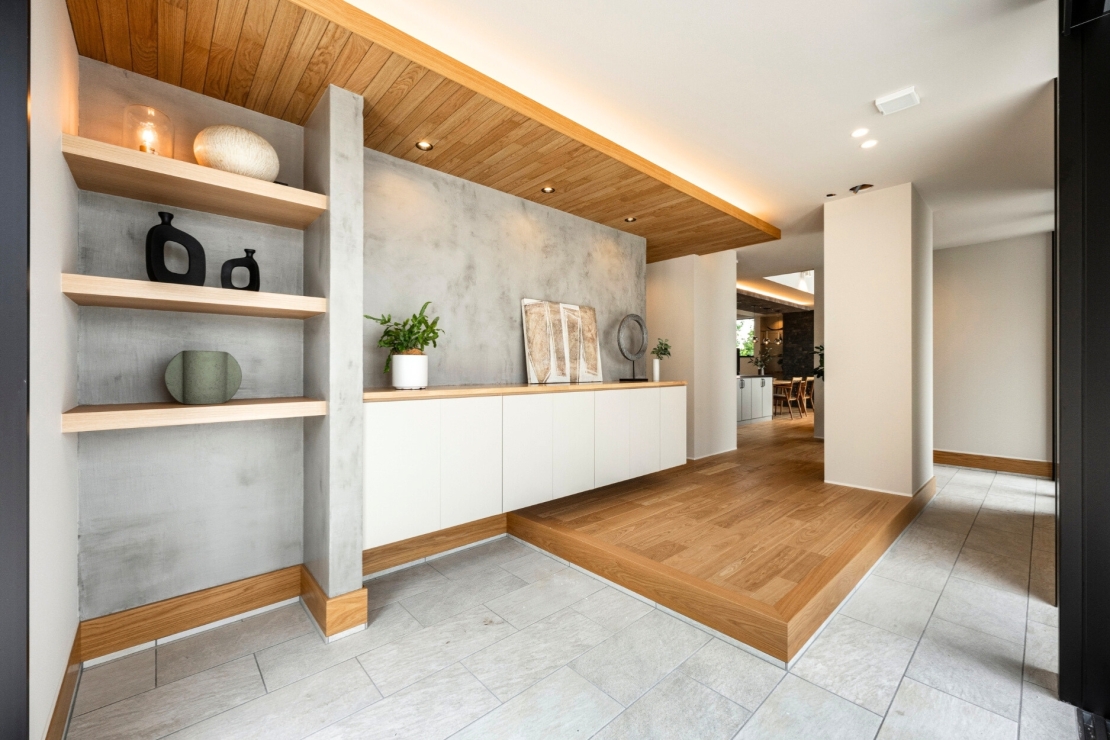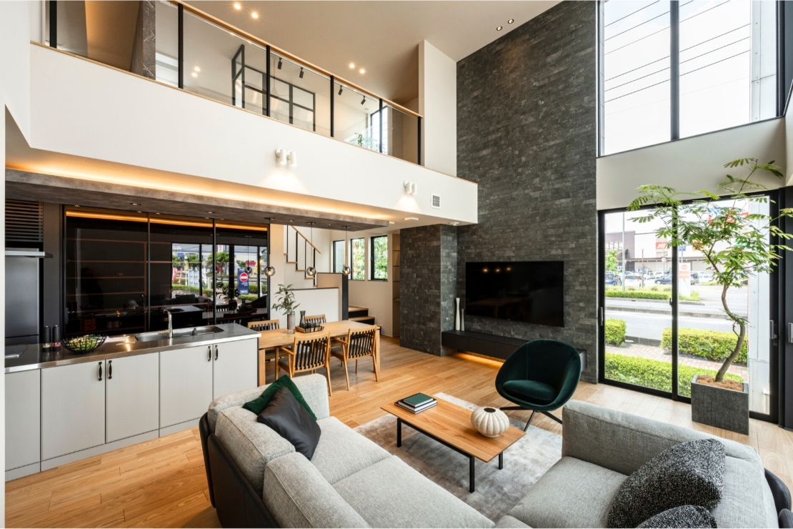 開放的な吹き抜けと、ゆるやかに繋がる中二階が縦の広がりを演出。スキップフロアはリビングとつながり、多目的に使える空間。家のどこにいても気配が感じられる、心地よい暮らしを体感できます。