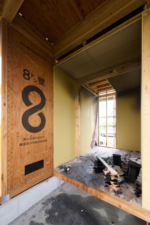 省令準耐火構造は、独立行政法人住宅金融支援機構が定める構造(仕様)に合致する建築物を指しますが、弊社では同機構の仕様書だけで施工するのではなく安井氏などの研究者や有識者と共に理論を深く理解したうえで実証実験を行い、オリジナル仕様の耐火マニュアルを策定。「AQダイナミック構法」に省令準耐火構造を反映させるだけでなく、火が入りやすいとされる石膏ボードの繋ぎ目の下地材を通常より幅広くするなど、“基準のさらに上”をいく工夫があります。