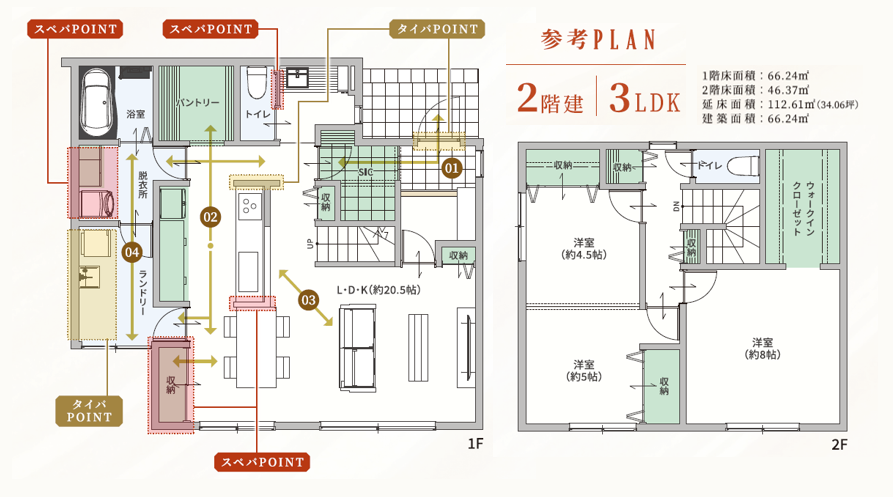 各所にタイパ提案・スぺパ提案を盛り込んだ新「AQ Grand」参考プラン(2階建て3LDK/延床面積112.61㎡)