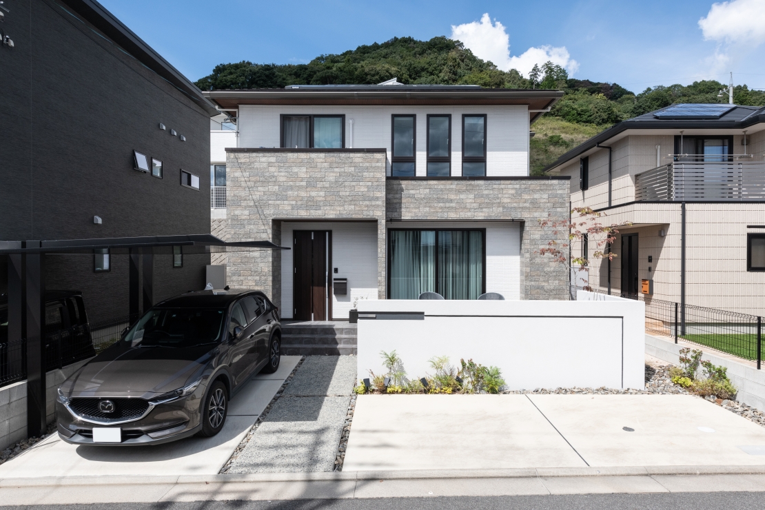 ゆとりある駐車スペース・テラスと堂々とした外観