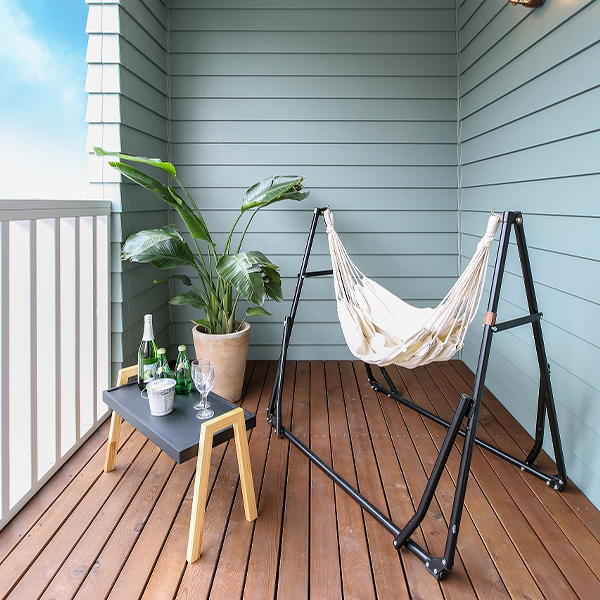 ドアを開けて、その先に広がる大きなウッドデッキは、家族の時間や趣味の場所にも最適!