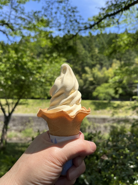 休憩地点の道の駅「横川」では、補給食として名物「椎茸ソフト」をいただきました。微かな塩味と甘み、椎茸の香りが絶妙でどなたにもお薦めのスィーツです。