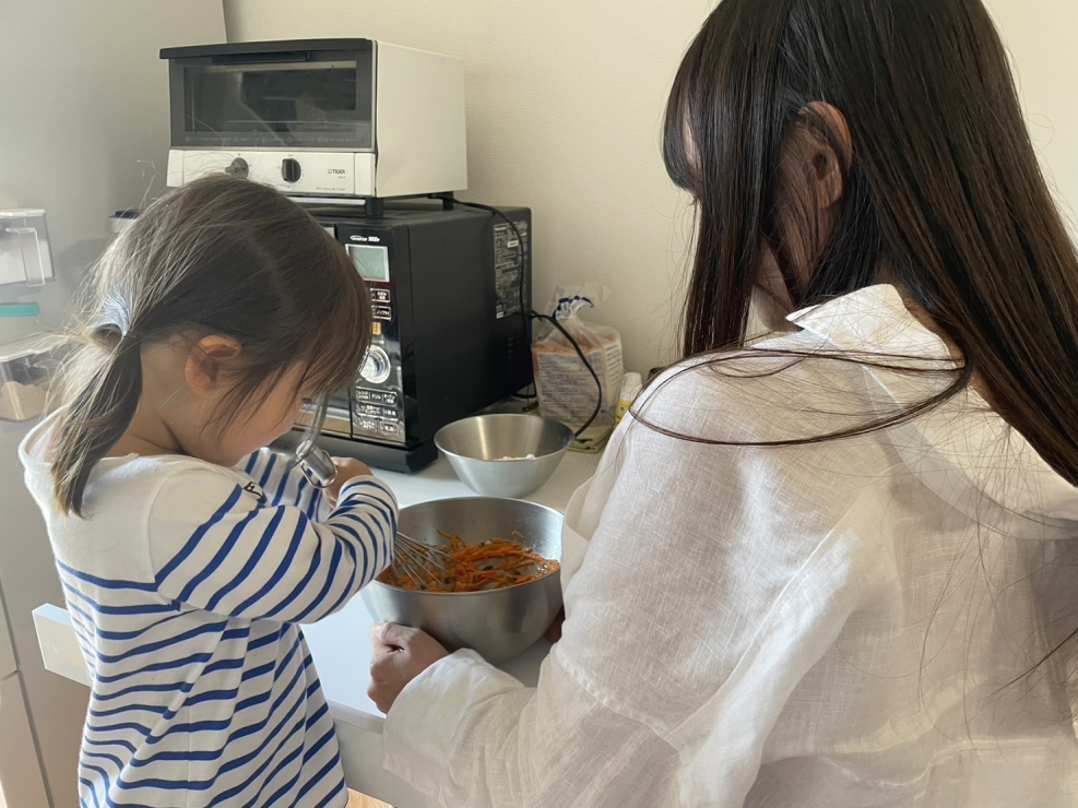 料理好きの友人主導でキャロットケーキを作り、