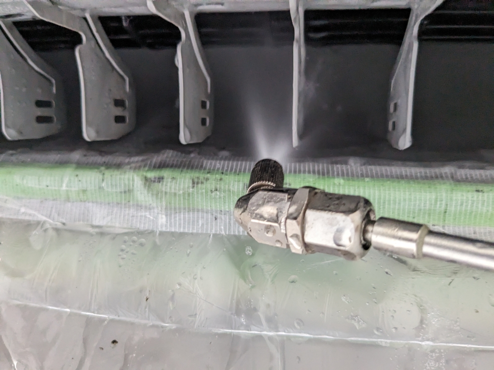 洗剤を使い、高圧洗浄機でクリーニングします・・!