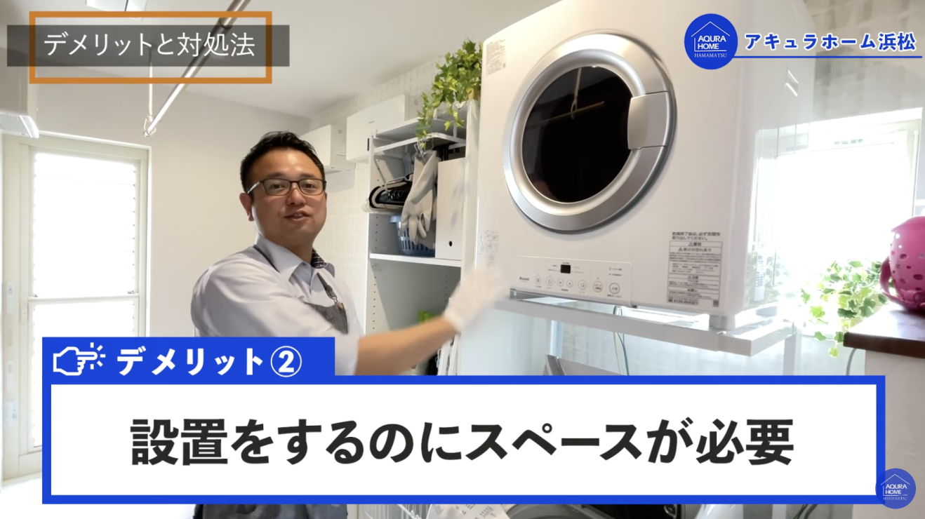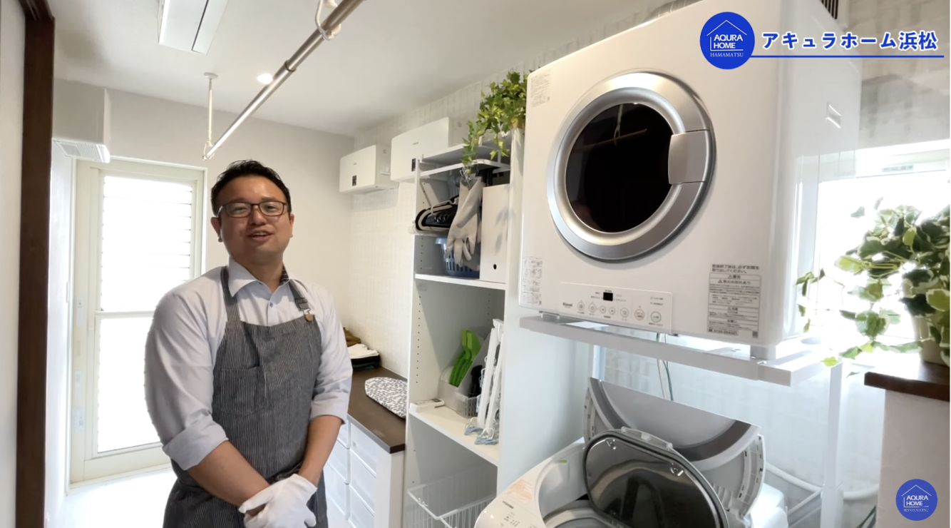 ここ数年、SNSでも目にすることが増えたのがガス衣類乾燥機「乾太くん」です。リンナイから発売されているガス衣類乾燥機「乾太くん」はアキュラホーム浜松支店の社員も自宅に取り入れているくらい、毎日の家事負担を軽減するのに役立つアイテム。