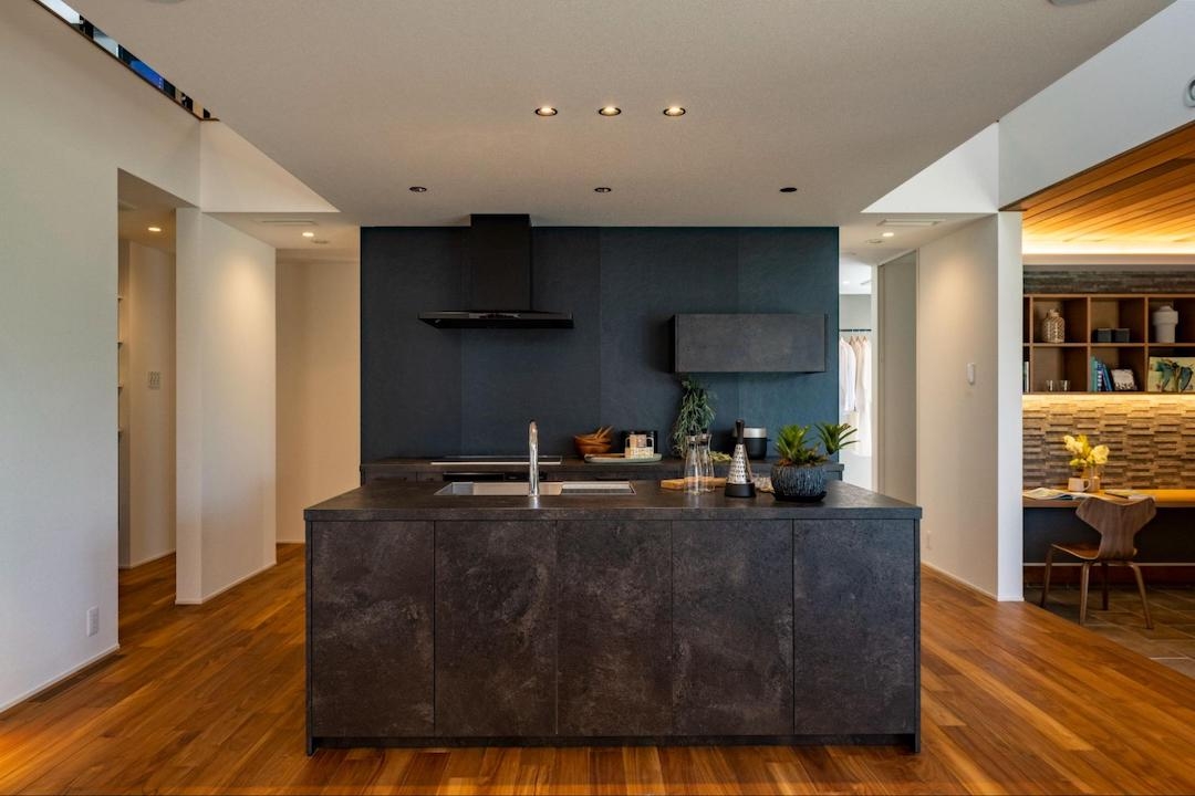 モノトーン調にまとめるなら、大理石風のフローリングや石目調のキッチンなどを取り入れてみるとカッコ良い印象になります。