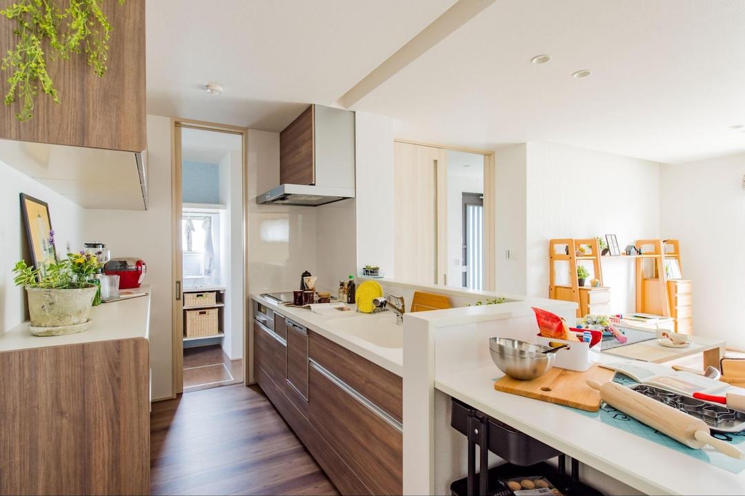 通路幅を広くすれば、大人2人がキッチンに立ってもゆったり使えるため、広々としたキッチンにしたい際にはおすすめです。
