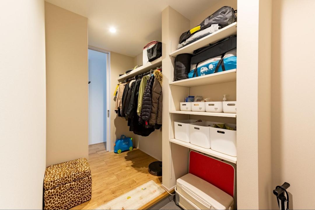 シューズクロークがあれば、棚の一段分を防災グッズ置き場にすることもできます。