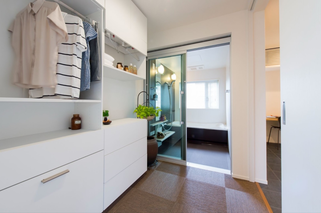 また、「自宅に帰ってすぐにシャワーを浴びたい!」「家に帰ったらまず着替える」という方は、1階にある浴室のすぐそばにファミリークローゼットを配置。ランドリールームも同じ動線上に配置すれば、家に帰ってすぐにお風呂に入る・脱いだ衣類を洗濯機に入れる・部屋着をクローゼットから出して着替えるという全ての動線が1フロアで完結できます。
