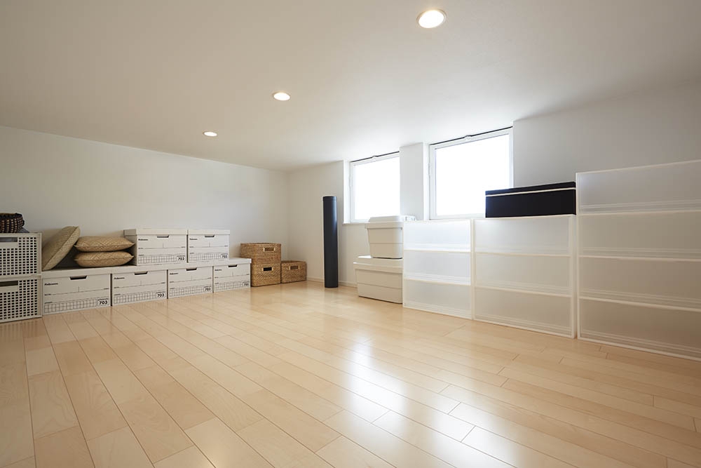 ロフトや小屋裏空間は、普段は収納スペースとして使えるほか、書斎や子どもたちの秘密基地としても活用できます。