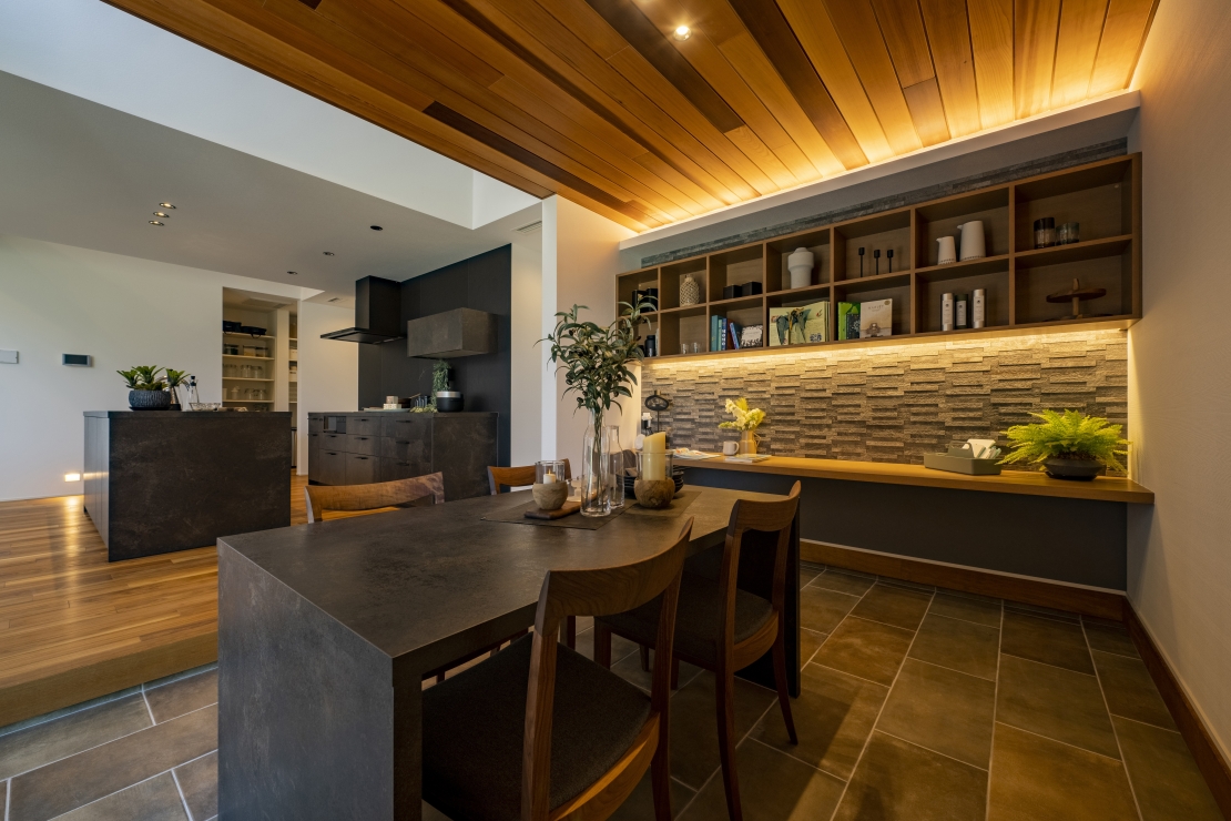 アキュラホーム静岡展示場のダイニングのように、お部屋の一部を土間スペースとするのも楽しい工夫です。