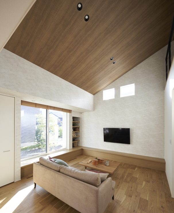 特に、床を下げた分、床から天井までの空間が広がるので吹き抜け天井にしなくても開放的な空間を演出できます。