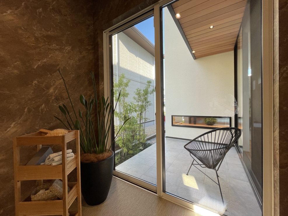 もちろん、外干ししたい方のために、ランドリーコーナーのすぐ隣には、テラスを作り、洗濯物を干せる動線をお作りしました。