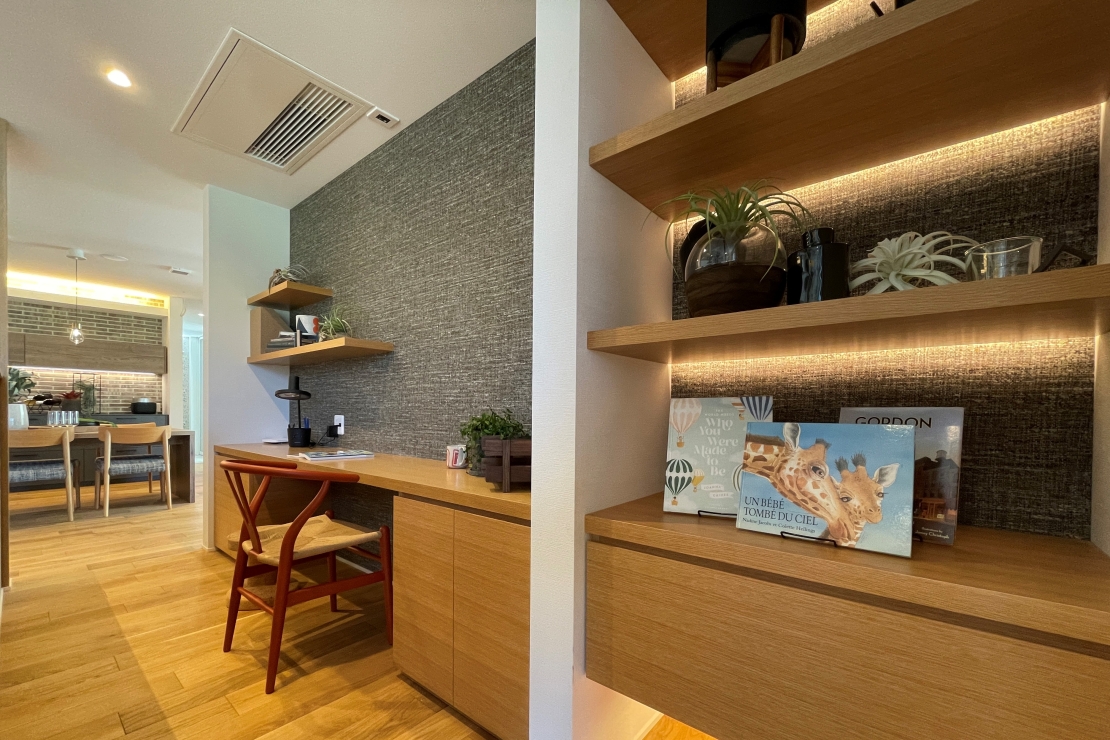 リビングやダイニングのすぐ近くにワークコーナーがあればドリルや描きかけの絵なども置きっぱなしにできるということで、お子さまの勉強コーナーをお作りしたいというご要望、お客さまからも多く寄せられています。
