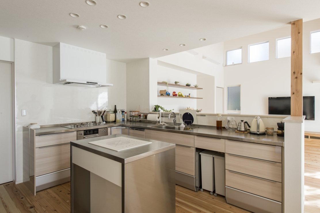 もっと広々とキッチンを使いたい場合には、キッチンの中央に作業カウンターを配置したL字型の間取りもおすすめです。