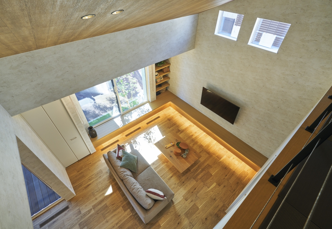 また、リビングの上にロフトを作り、小屋裏空間とリビングの間に室内窓を作れば、リビングから入る風が小屋裏にも届き、過ごしやすくなります。