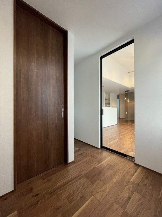 一般的なドアよりも高さのあるハイサッシやハイドアを選ぶと吹き抜けと同じように縦方向の拡がりが演出できます。ドアのサイズで空間を広く見せるられるなら取り入れておいて損はなし!