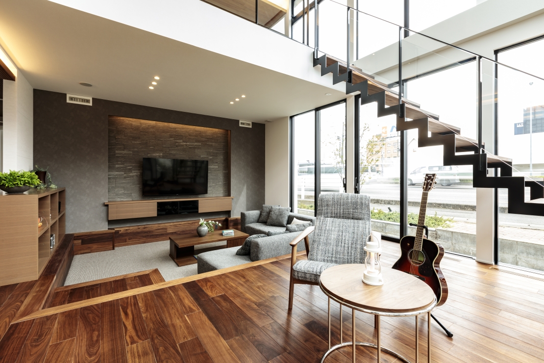 下の写真は、アキュラホーム藤枝展示場のリビング空間。