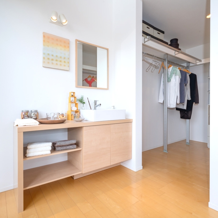 メーカーによる既製の洗面コーナーは汚れや水ハネがつきにくかったり、使いやすい高さになっていたりと、使い勝手がとてもよく考えられています。