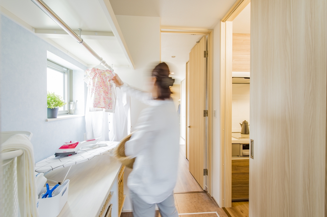 例えば、玄関からキッチン、洗面コーナーまでがぐるりとつながる間取りになっていれば、買い物をして帰って来た日の帰宅動線がスムーズに。