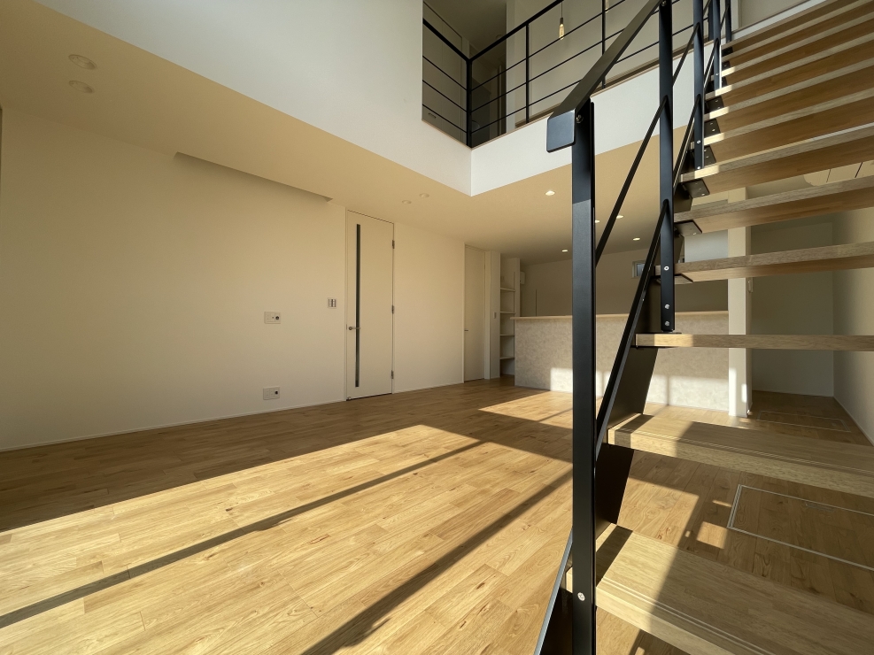 現在公開中のリアルサイズモデル「ガーデンプラザ志都呂Ⅲ B号棟」のオープン階段は、大空間のリビングとの相性もバッチリです。