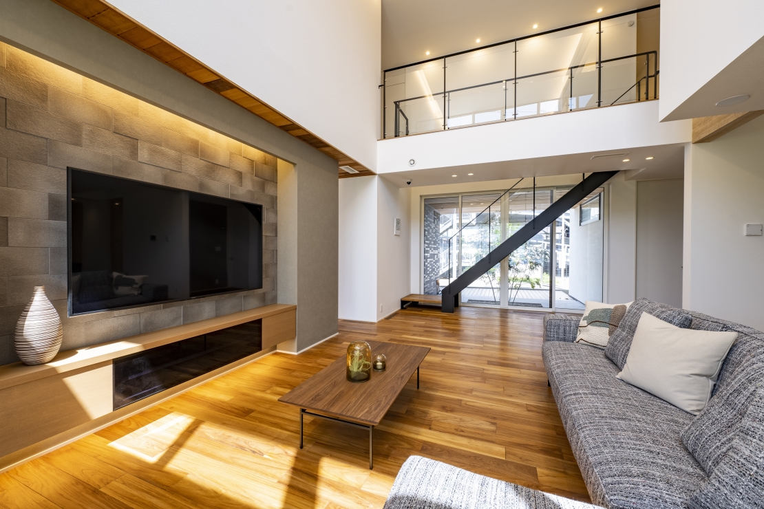 吹き抜けリビングにして2階の窓から日差しを取り入れたい場合。オープン階段なら光も風もよく通ります。階段下にソファを置いたり、植物を置いたり。いろいろな間取りが楽しめるのもオープン階段の魅力です。