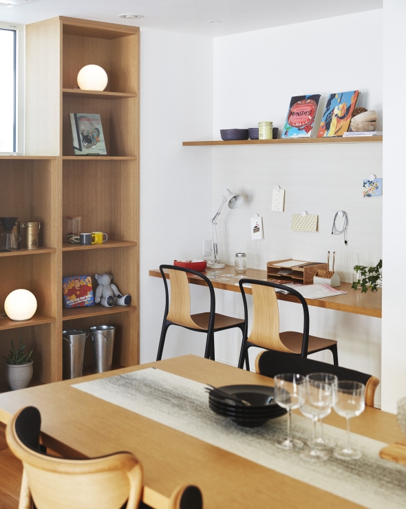 将来は、ダイニング横のカウンター収納や読書スペースなどに使えるように、シンプルなデザインにしておくと良いでしょう。