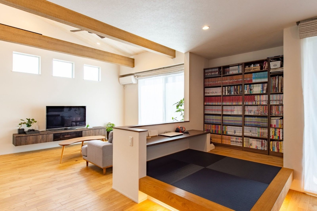下の写真のように小上がりの畳コーナーの下に間接照明を入れると、夜ほかの場所の照明を落としたときにもとてもおしゃれに。