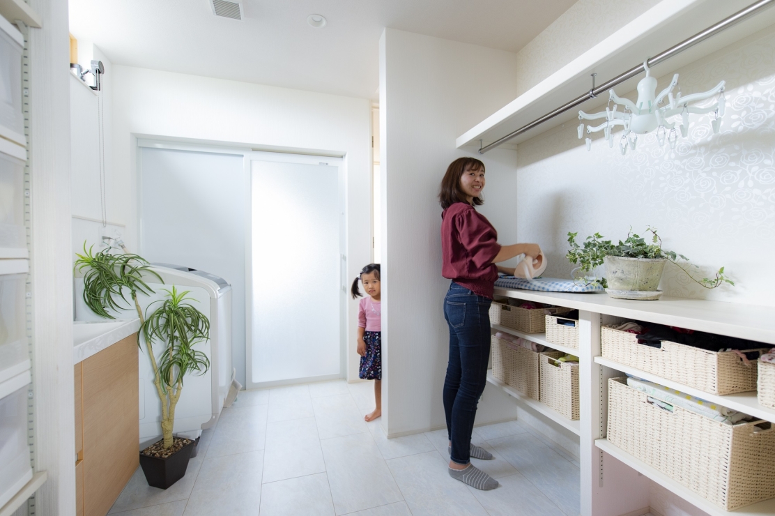 もう少し広くして3帖のランドリースペースにすれば、さらに使い勝手の自由度が上がります。