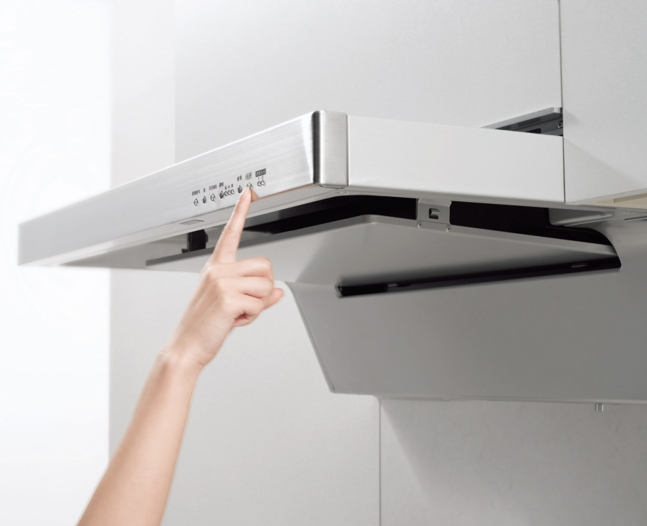 キッチン周りでもう一つおすすめするなら、レンジフードのお掃除がボタンひとつでできてしまう洗浄機能付きレンジフードです。