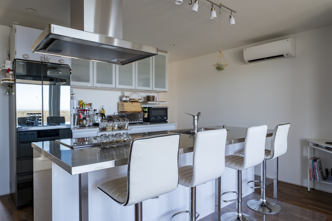 また、なかにはフラットキッチンの天板をダイニングテーブルとして活用する方も。