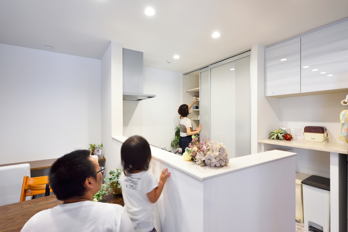 作業スペースが広いことから、複数人がキッチンに立つ場合だけでなく、家事動線もよくなります。