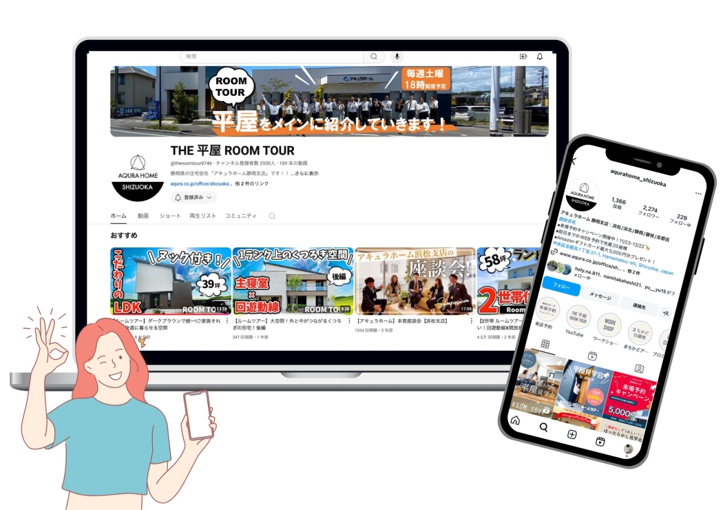 アキュラホーム静岡支店でも、家づくりのノウハウや情報をInstagramやYouTubeで発信しています。ぜひチェックしてみてくださいね!
