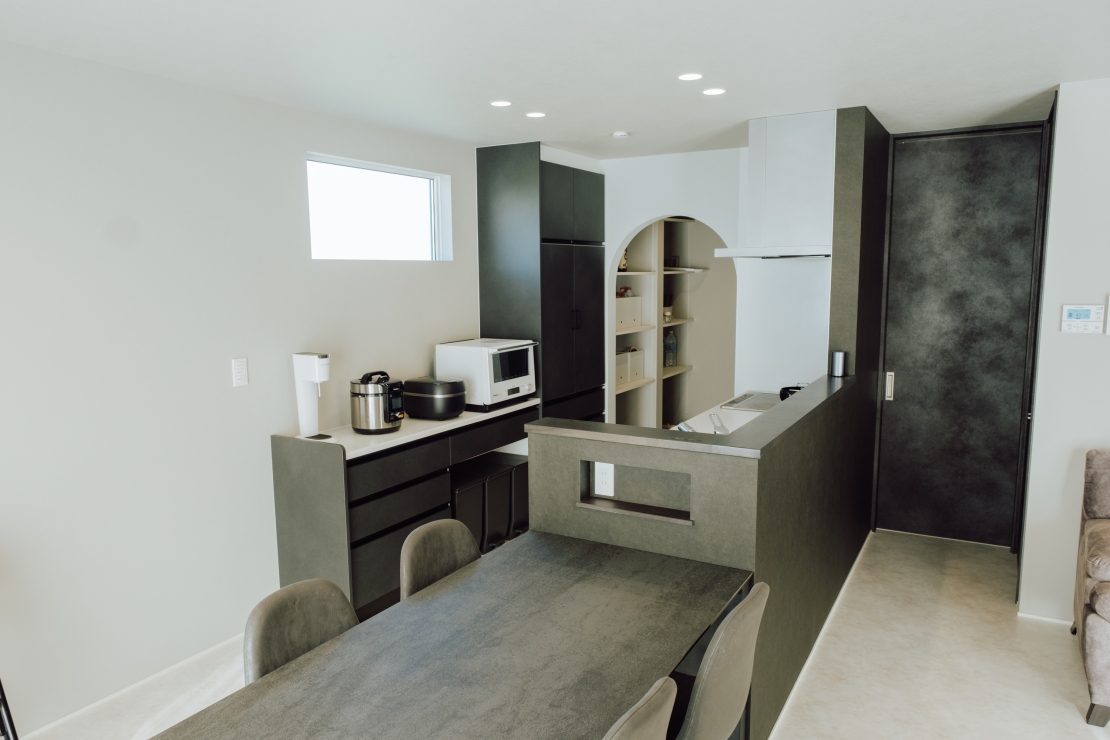▶︎ポイント1:キッチンとカップボードの距離は広めがGOOD