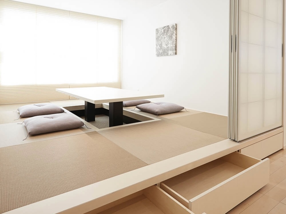 収納スペースを増やしたいなら、小上がりの下の空間も引き出しなどにすれば、おもちゃや日用品をスッキリ片付けることができて一石二鳥!
