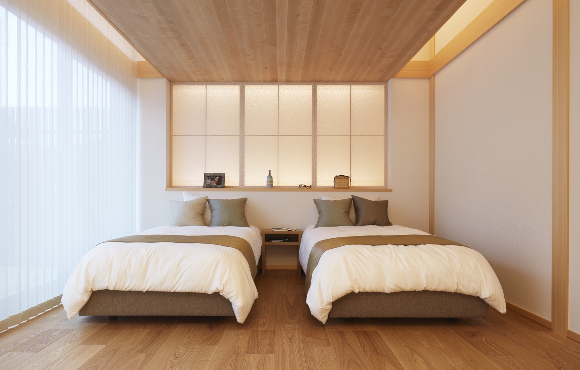 例えば、寝室の壁を真っ白なクロスにしておけば、ポップインアラジン(照明+プロジェクター)を設置して映画を大画面で楽しめます。照明とプロジェクターが一体型になっているため、壁さえあればすぐにホームシアターが完成します。