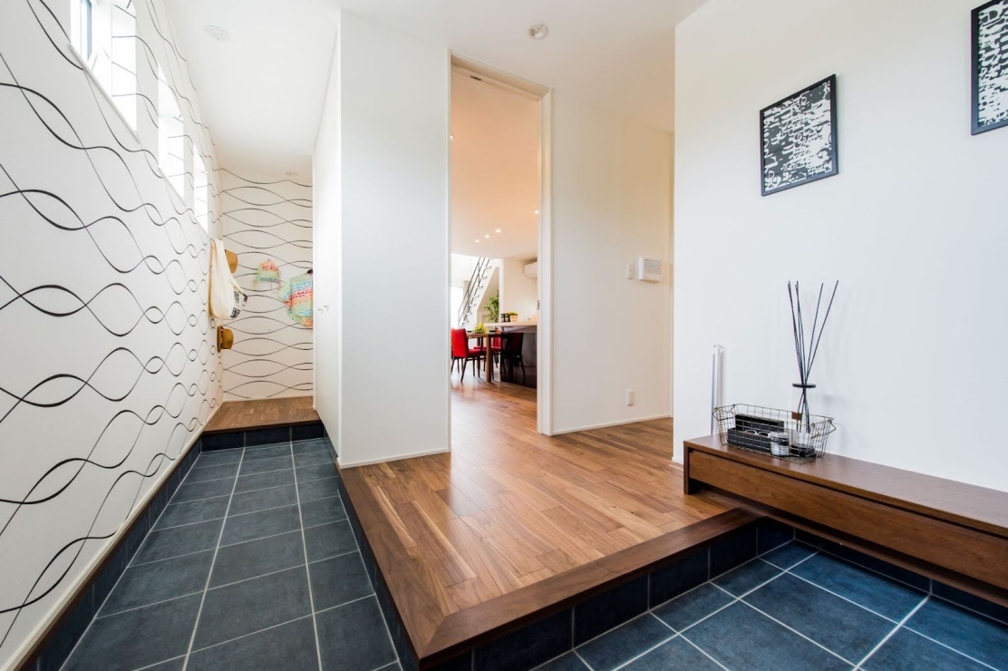 玄関から家に入る動線も、リビング直通の来客動線に加えて、すぐに手洗いうがいや着替えができる動線、片付け動線などを分けた間取りはシーンに合わせて使い分けられてとても便利です。