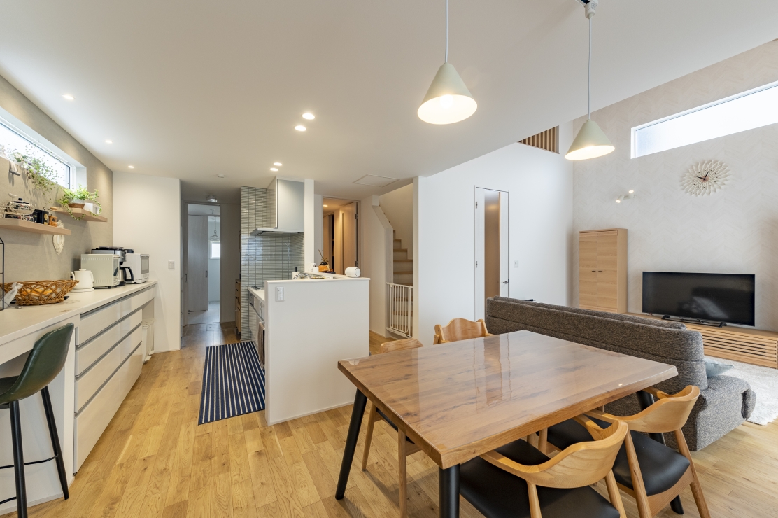 ぐるぐると歩き回れる動線があれば、「キッチンに立っていても、子どもがリビングを走り回るスペースを確保したい」というご家庭でも快適に生活できますよ。