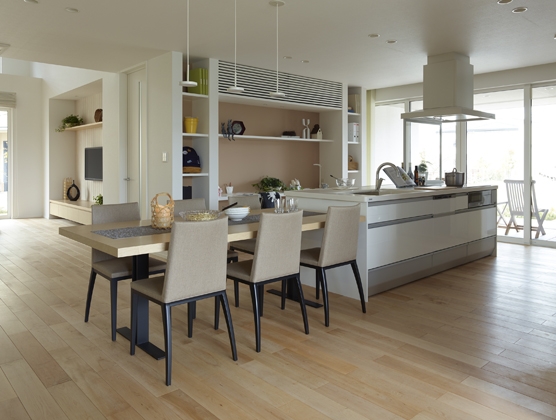 床の素材を選ぶときも飲み物やスープなどをこぼしてしまったときの掃除しやすさを考えて、フロアタイルなど洗面コーナーなどに使われる素材をLDKにも取り入れるのもおすすめです。フロアタイルは水に強く水拭きしやすいため、汚れが気になったらすぐに拭き掃除できるので、ペットを買っている方にも人気の素材です。