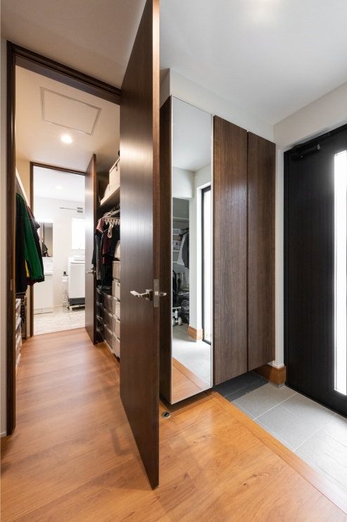 玄関の隣に、大容量のウォークスルークローゼットを設けました。