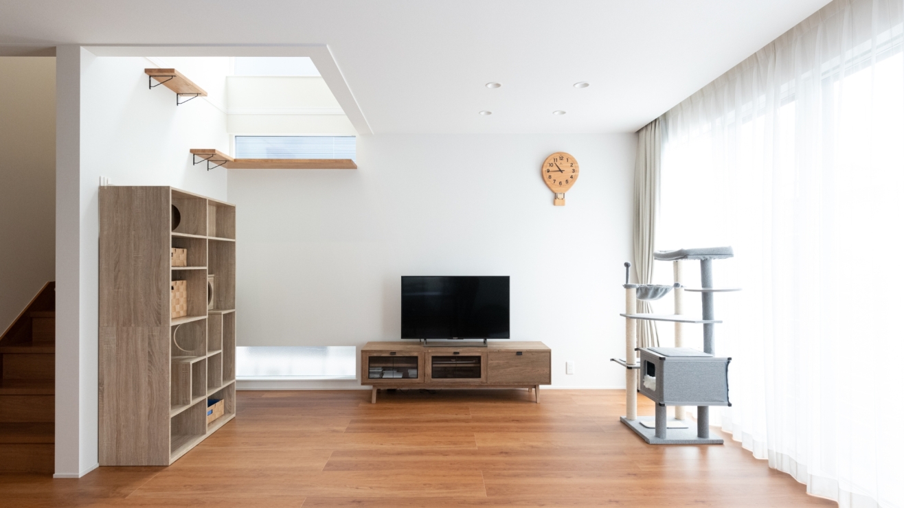 日当たりの良いリビングは、ご家族と愛猫が共にくつろげる癒やしの空間です。